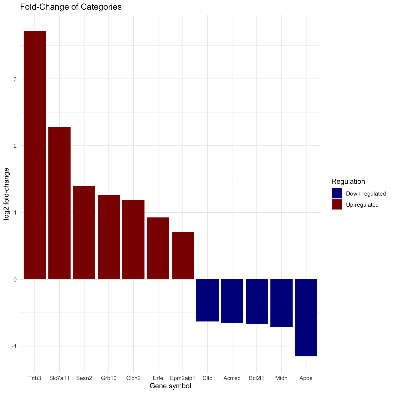 [1] "Apoe" "Bcl2l1" "Grb10" "Clcn2" "Acmsd" "Slc7a11" "Sesn2" "Trib3"