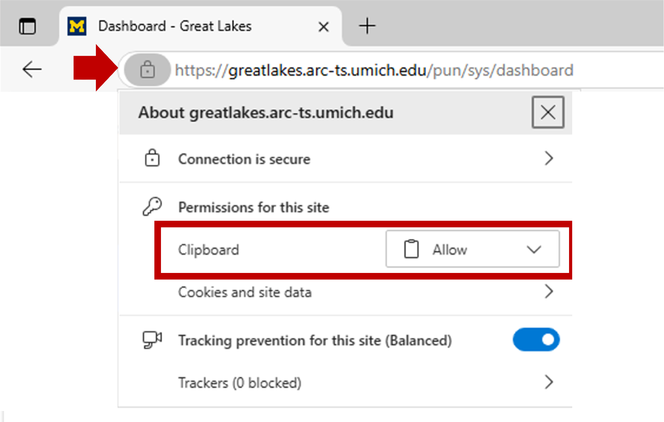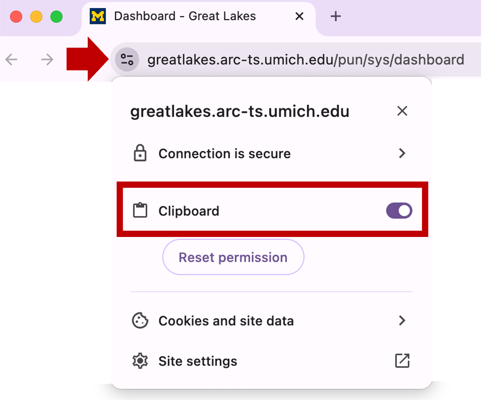 If you need to set or reset the clipboard settings, you can click on the site information icon left of the browser’s URL: