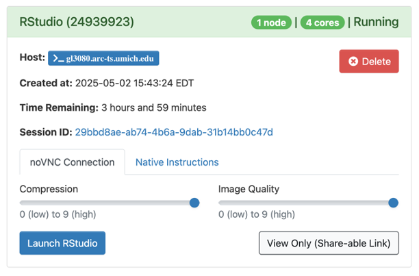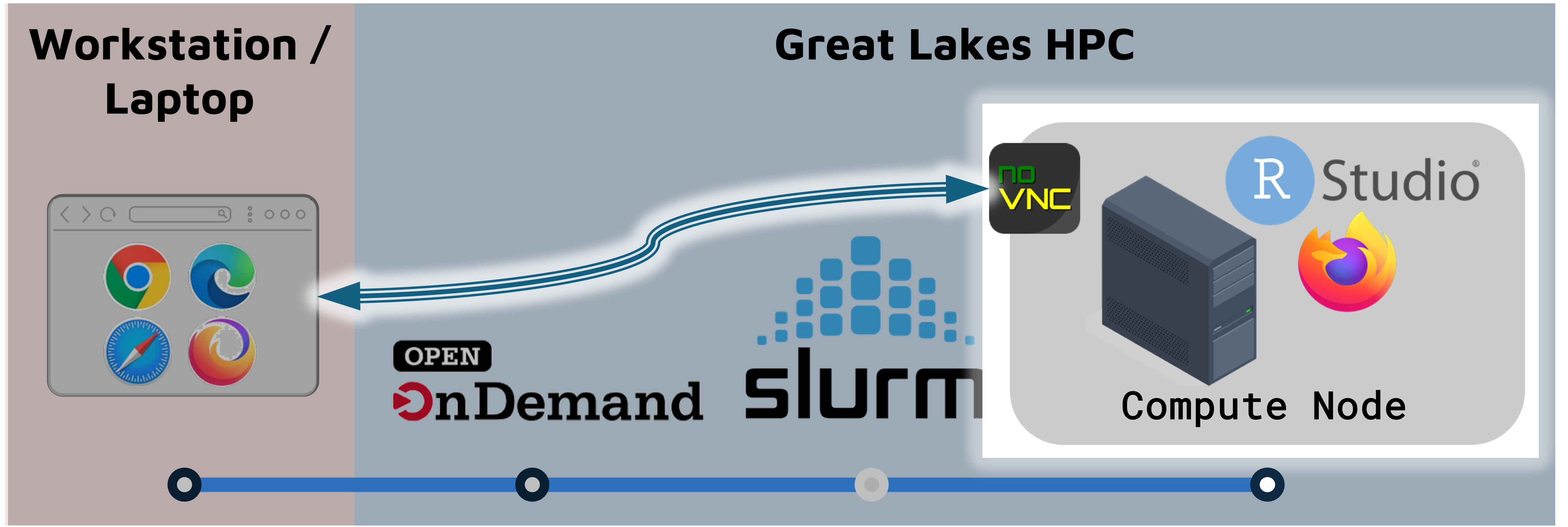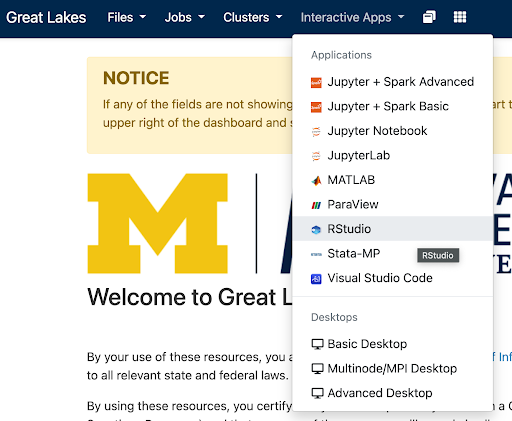 On Great Lakes, you launch a RStudio session on a SLURM compute node.