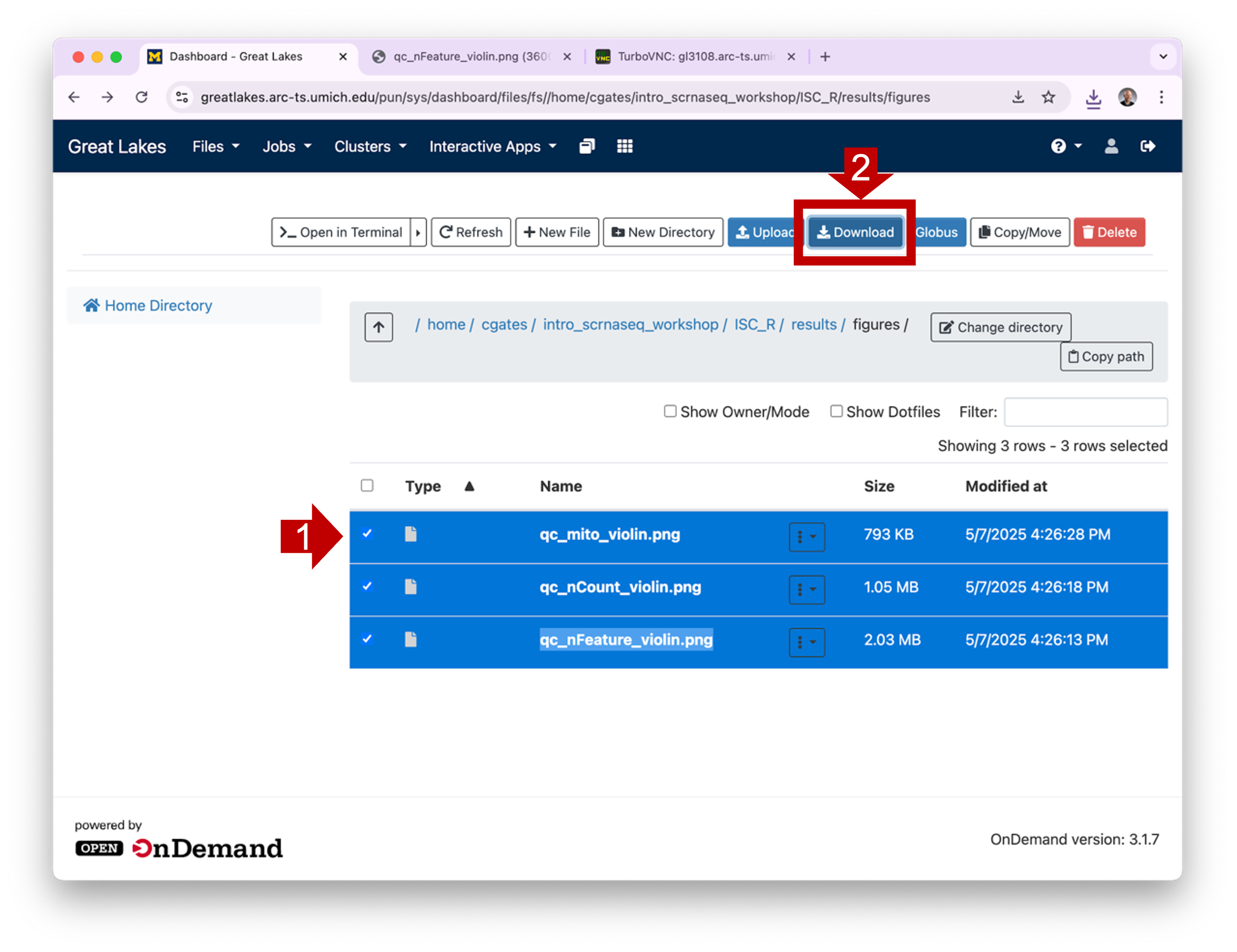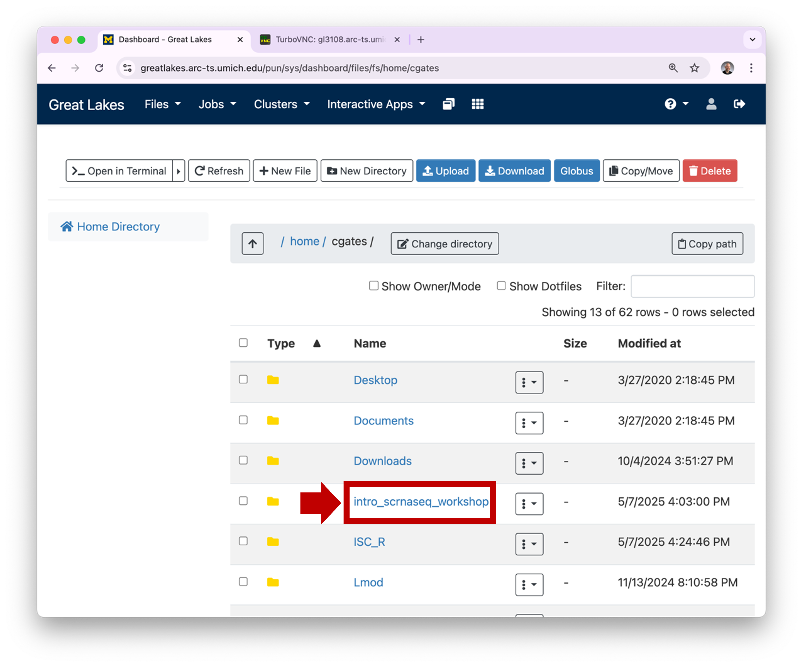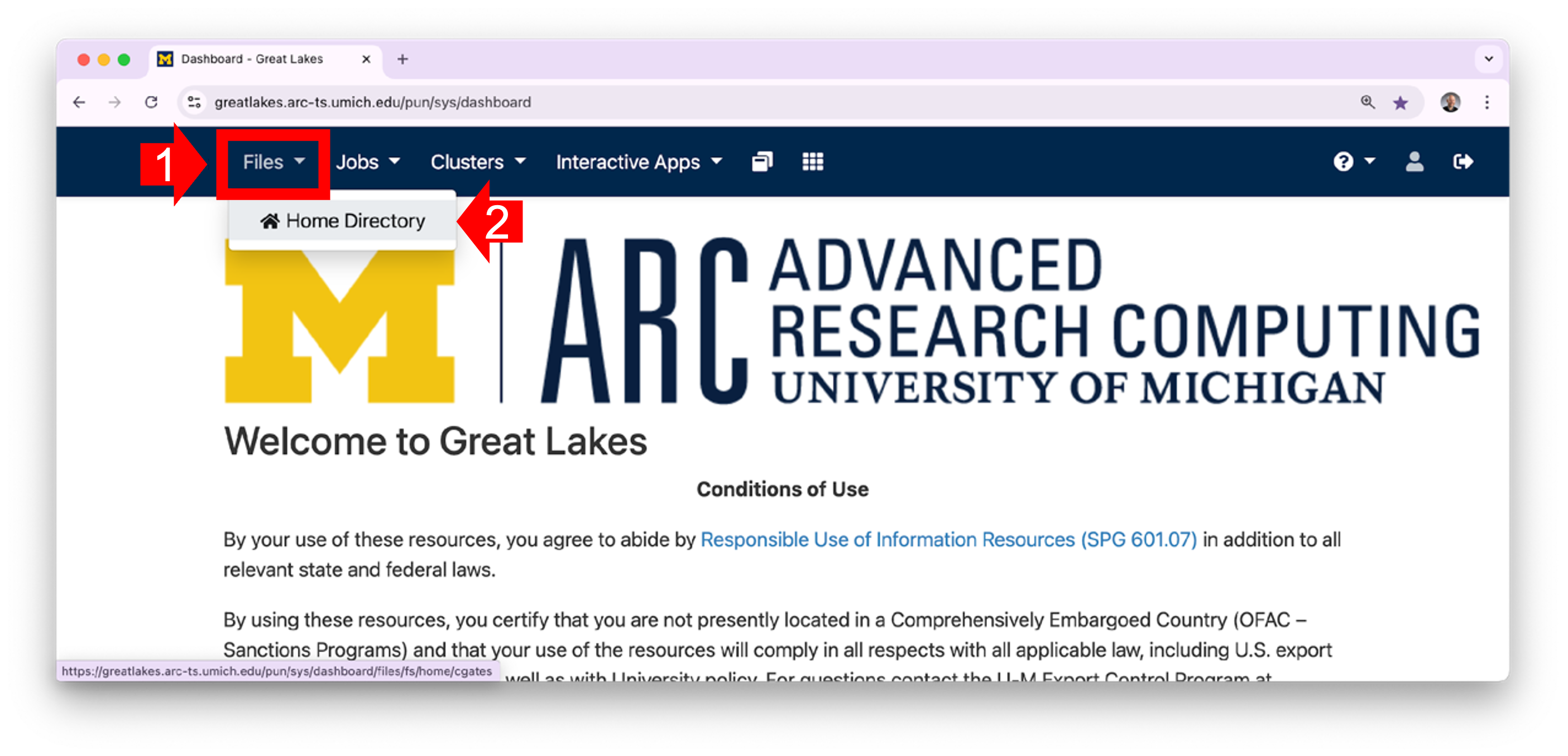 Open OnDemand (OOD) lets you browse your files and move small files (e.g. scripts or plots) between your workstation and Great Lakes using your web browser.