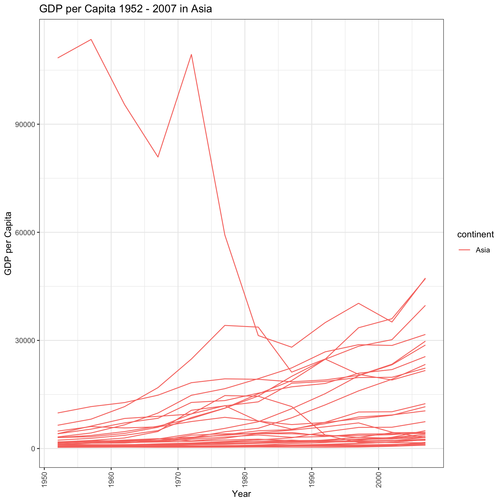 title = 'GDP per Capita 1952 - 2007 in Asia',