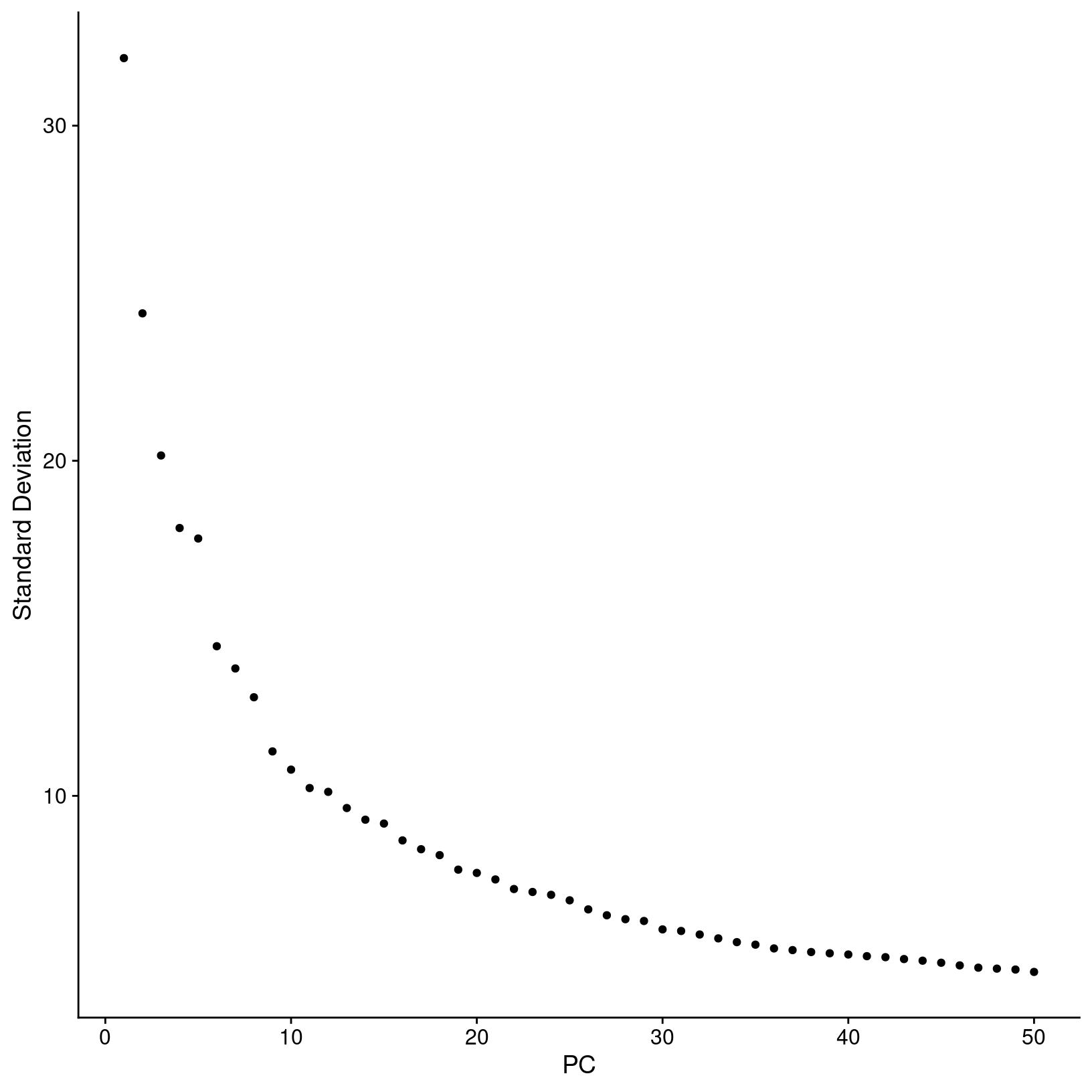 single-cell data we expect that many more PCs are contributing to the