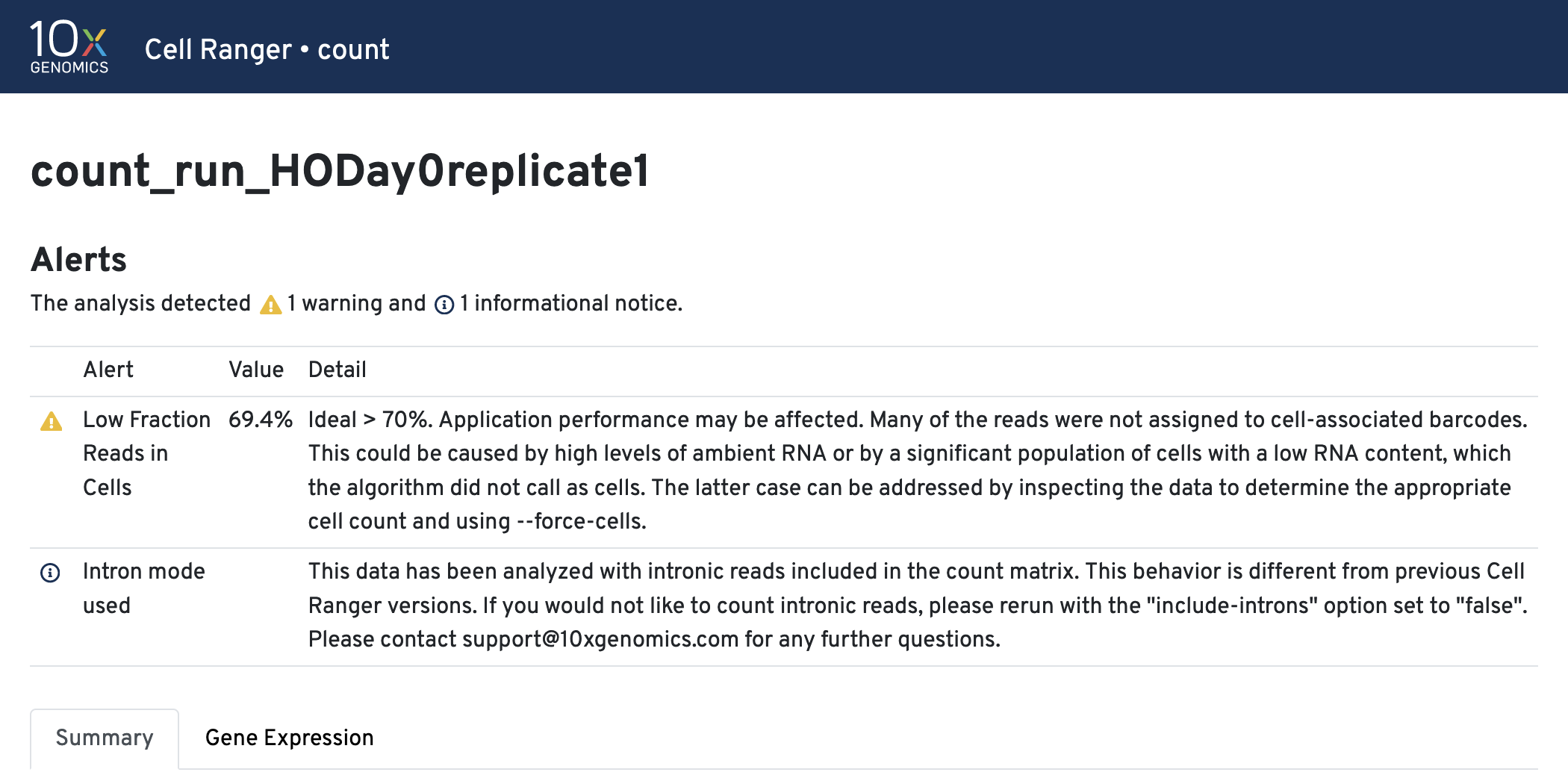 issue.Intron mode was used. This helps with cell calling and is on by default.