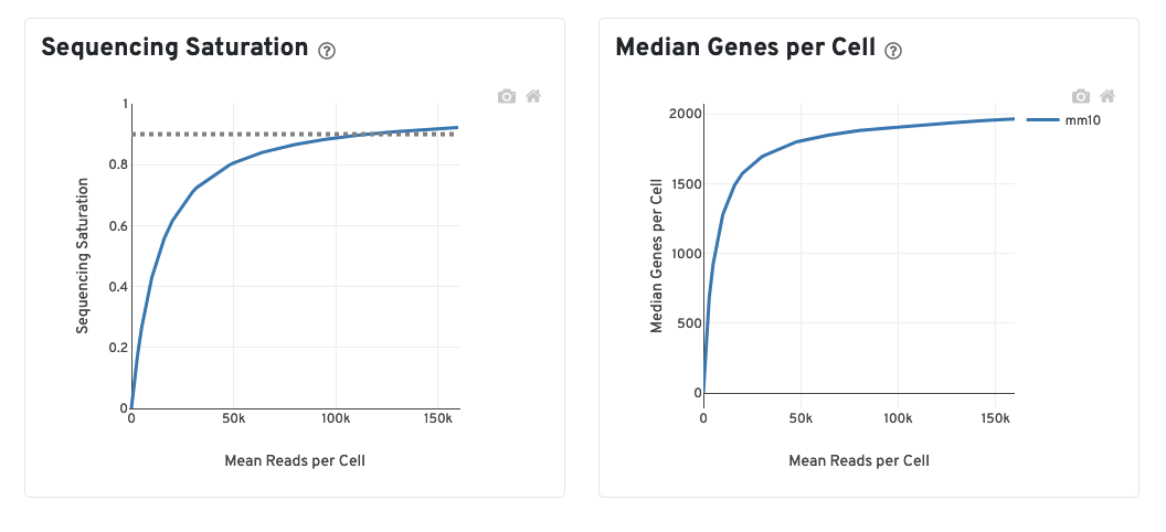 To think of this another way, if you hit 60% saturation, for every additional 100 reads/cell you could expect to see 40 more genes. At 40% saturation you could expect to see 60 additional genes for every additional 100 reads/cell. At 20% saturation you could expect to see 80 additional genes for every additional 100 reads/cell and so on. Therefore if your sequencing saturation is high enough, you are unlikely to gain additional biologically relevant data with additional sequencing. If your sequecing saturation is low, additional sequencing will improve your downstream analysis and reveal more about the underlying biology.