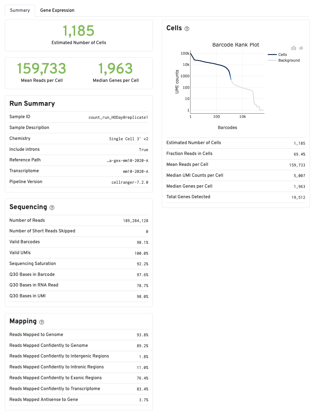 The important parts of the web_summary.html we look at to determine the quality of the 10x analaysis include: