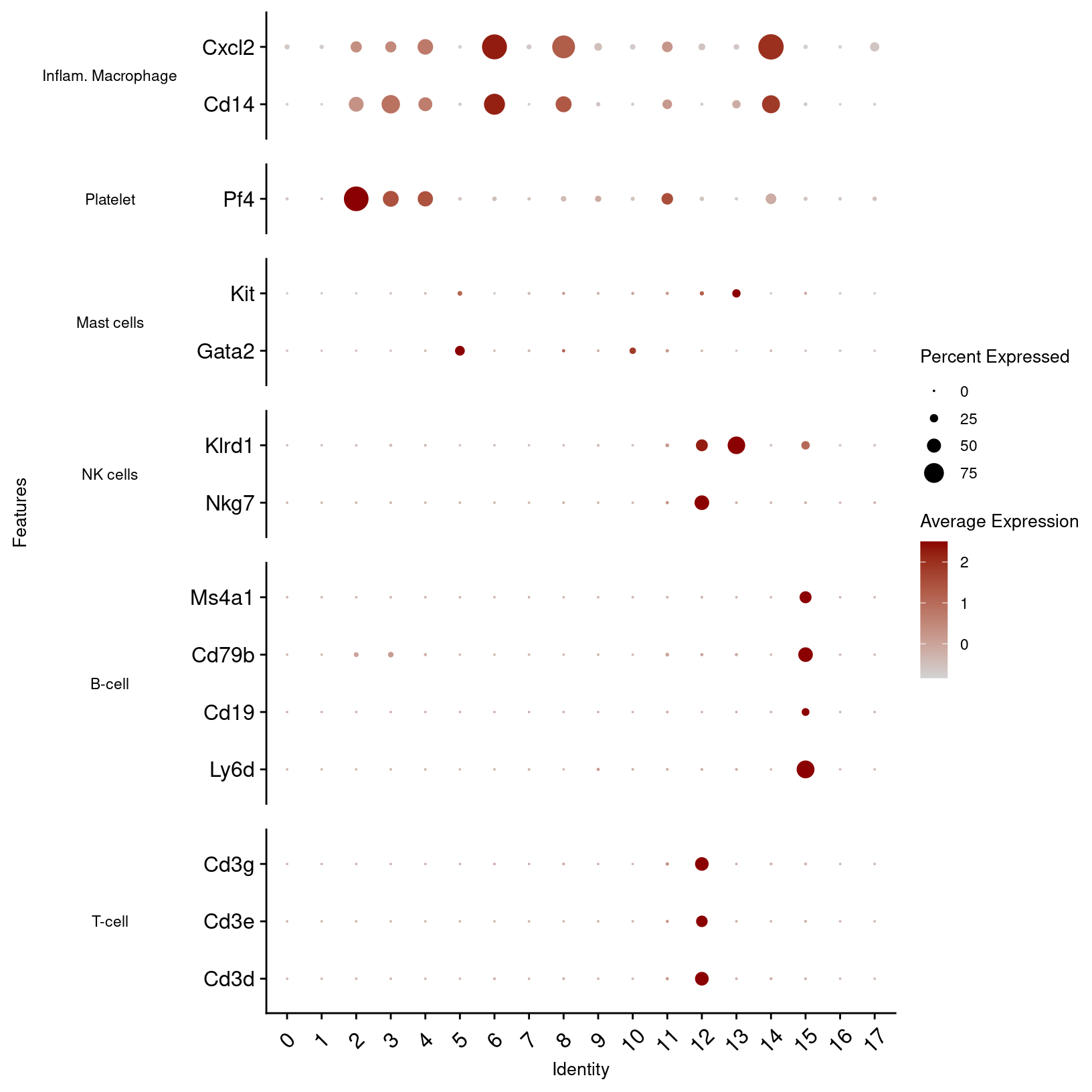 'Inflam. Macrophage' = c('Cd14', 'Cxcl2'),
