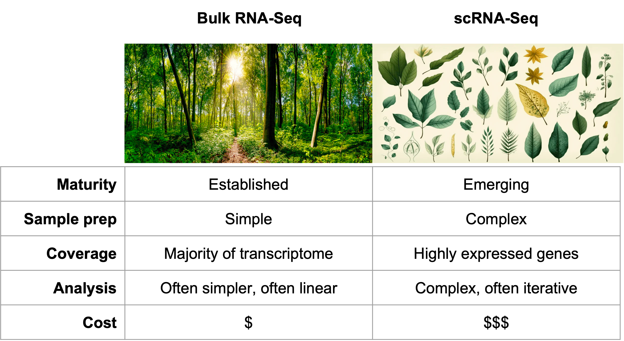 approaches where bulk RNA-Seq provides a “forest-level” view while