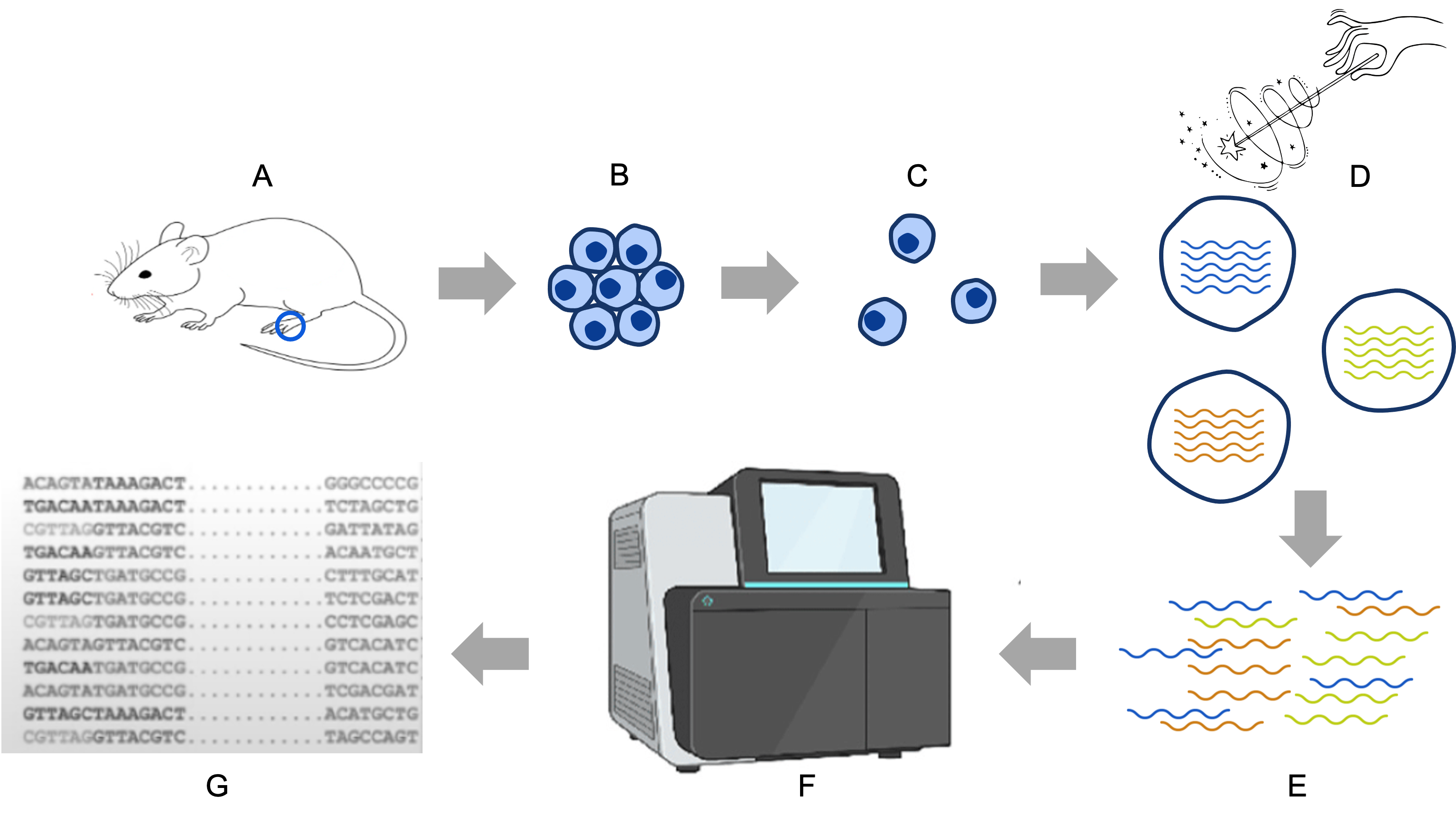 - A sample of mouse tissue is extracted from a healthy mouse.