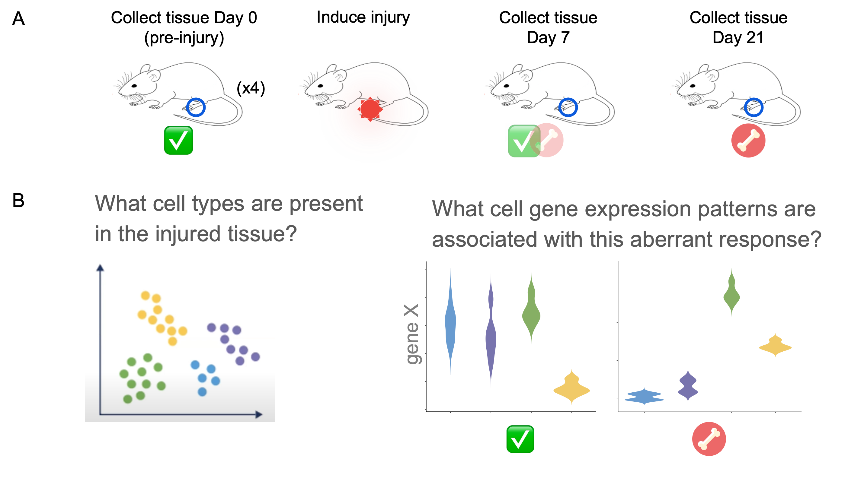 on a mouse model where a soft tissue injury is followed by an aberrant