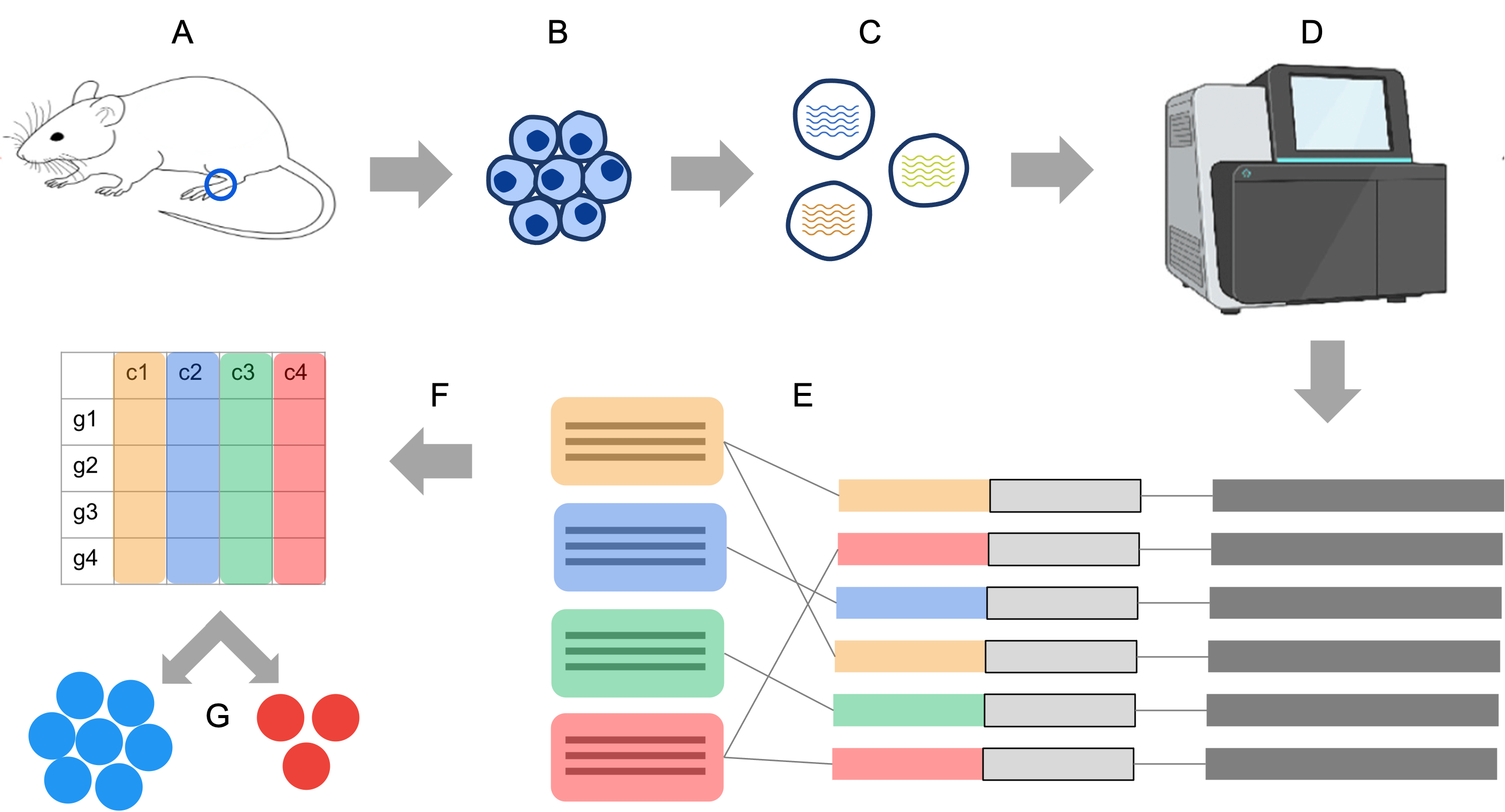 - Once mRNA transcripts have been converted to barcode-labeled cDNA
