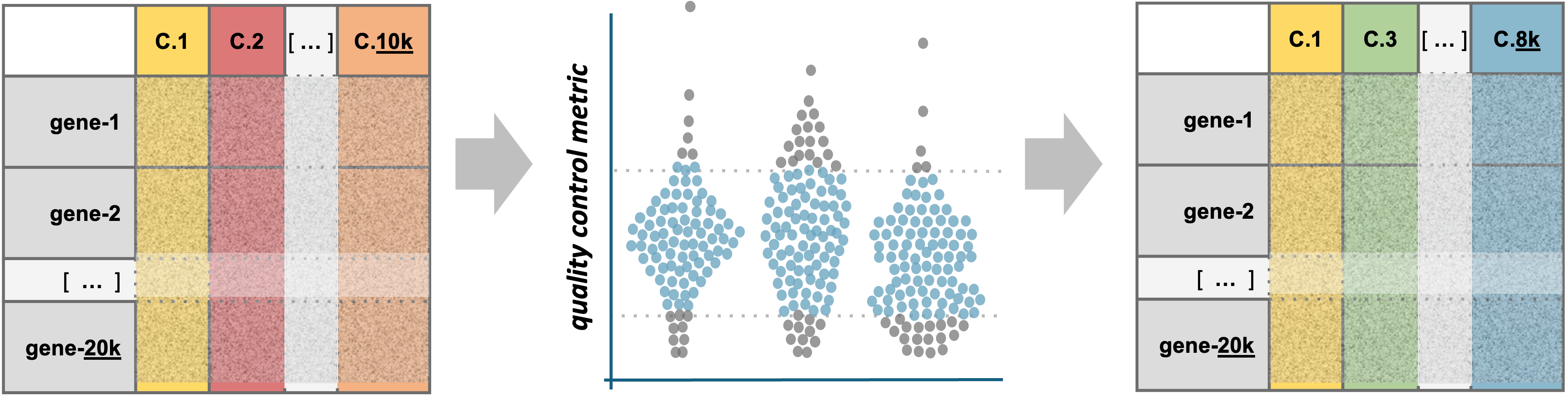 For this workshop we will use fixed thresholds, but another option is to remove low-quality cells adaptively. This approach assumes that most of the cells are of acceptable quality. For more information see the relevant section in Bioconductor’s online book: Orchestrating Single-Cell Analysis.