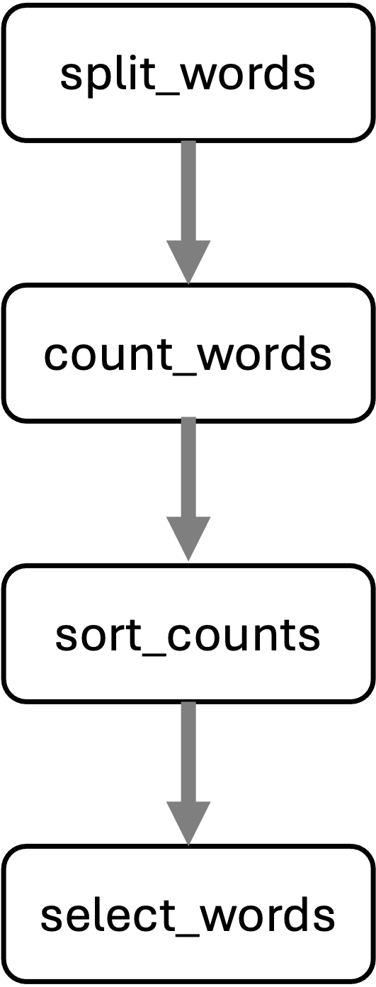 ... Job stats: job count ----------- ------- count_words 1 split_words 1 total 2 ... rule split_words: input: inputs/little_women_part_1.txt output: results/little_women_part_1.split_words.txt jobid: 1 reason: Code has changed since last execution resources: tmpdir=/tmp ... rule count_words: input: results/little_women_part_1.split_words.txt output: results/little_women_part1.count_words.txt jobid: 0 reason: Input files updated by another job: results/little_women_part_1.split_words.txt resources: tmpdir=/tmp