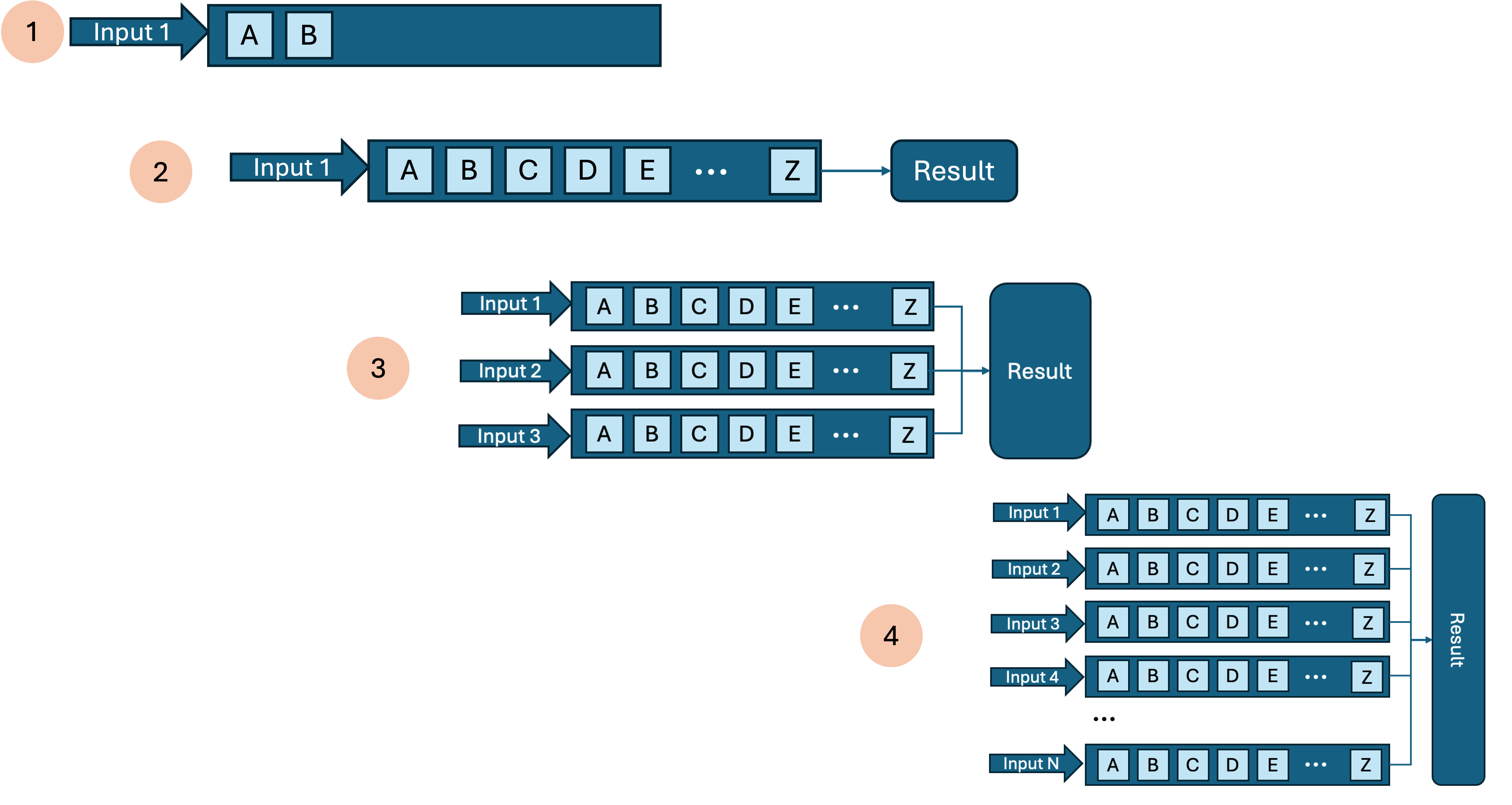 All these approaches execute the same workflow in different ways. This workflow produces word pangrams. A word pangram is like an anagram that allows repeating letters, e.g. the sequence of letters ACEHMNT can be rearranged to create the pangrams ATTACHMENT, CATCHMENT, ENCHANTMENT, and ENHANCEMENT.