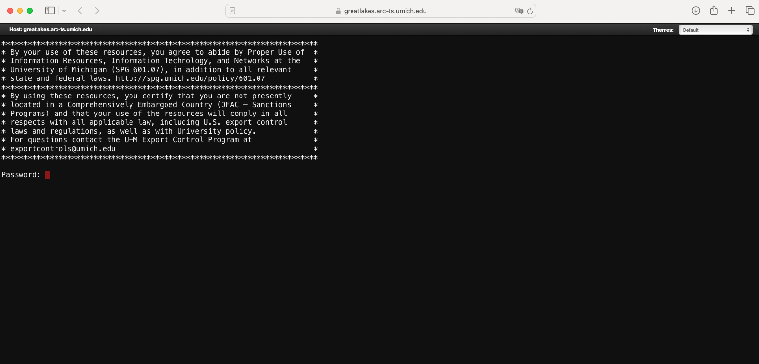 Following along with the instructor, we’ll use the web-based shell to connect to Great Lakes. Once there, we’ll run an introductory script, and take a first look at some of the files provided for the workshop.