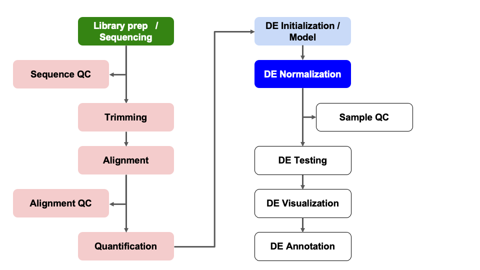 Note: The above figure was originally from a HBC tutorial that also includes a detailed comparison of different normalization (CPM, TPM, FPKM) approaches and their best uses, which are summarized below.