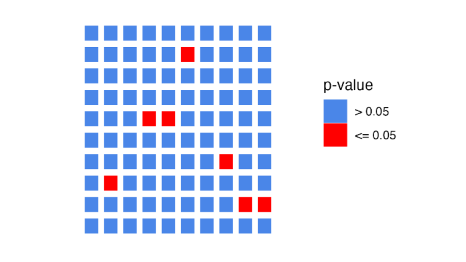 p-value < 0.05, we’re expecting a 5% chance it is a false positive.