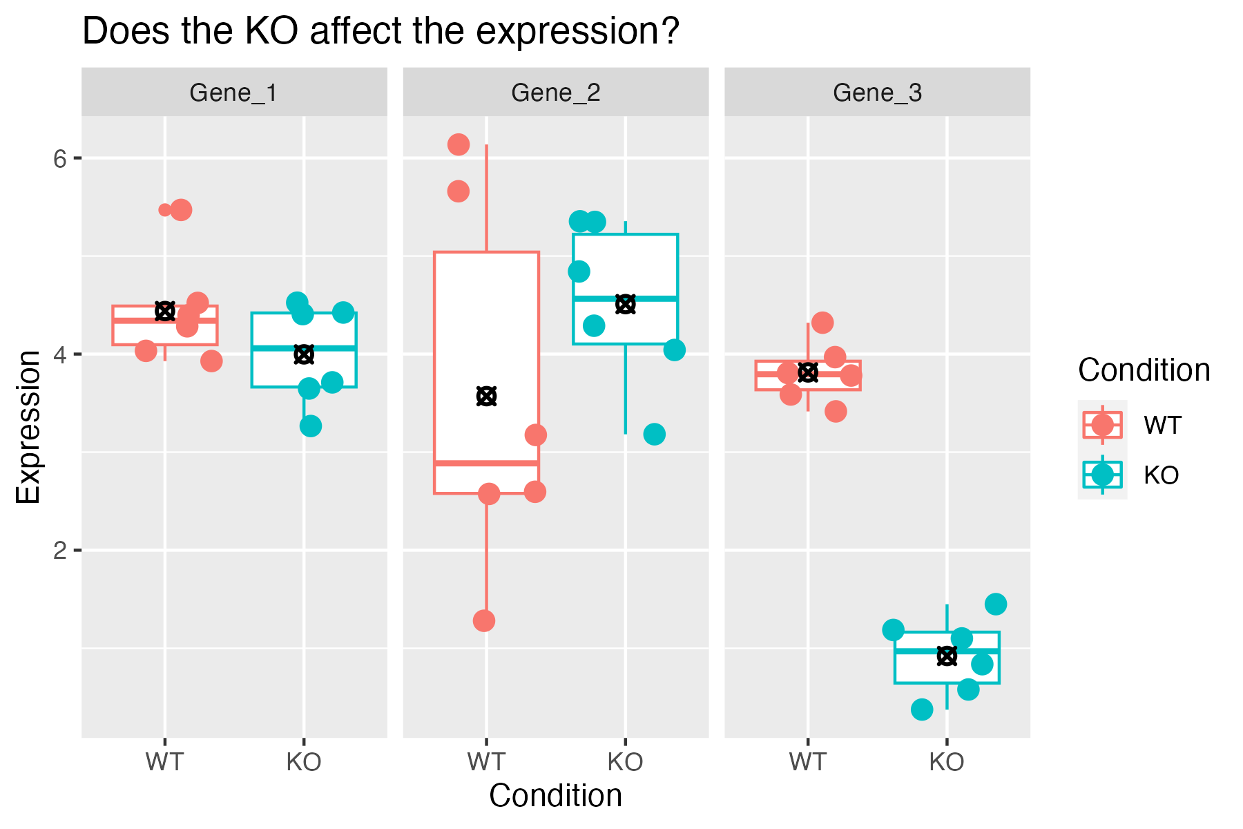 Since we have fairly small sample sizes for each condition, we see